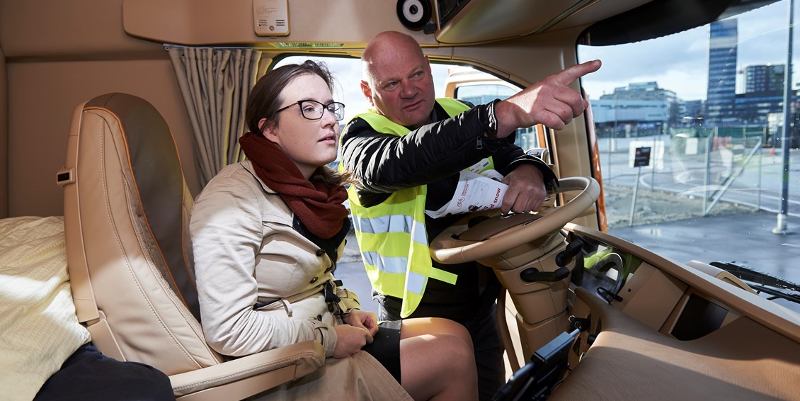 Også de ansatte i FN var glade for besøget. Mange af de ansatte var for første gang oppe i førerhuset på en lastbil og opleve udsynet bag rattet.